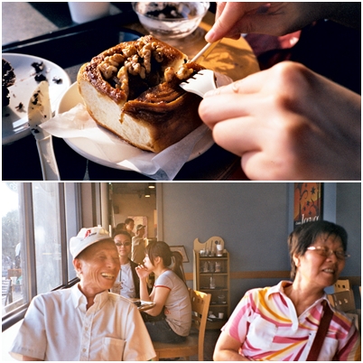 一起share美食街的麵包、或是病人餐、家裡送來的餅乾水果